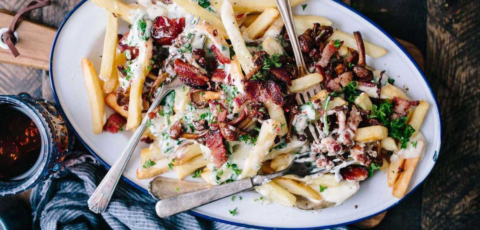 I know, what could be better that a steaming plate of fries, gravy and cheese curd? Fries, gravy, cheese curd and bacon, that’s what! Throw in some fresh shallots, chilli, and a splash of roasted bone marrow and duck gravy, and we turn this popular French-Canadian dish into a something sublime.